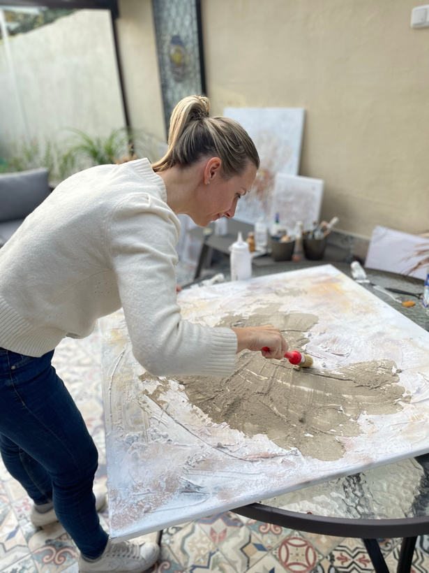 Mi obra se centra en la simplicidad, la reducción y la textura, con el objetivo de invitar a la contemplación y la reflexión. En ella se puede ver mi exploración a través de superficies rugosas, suaves, brillantes, opacas... para transmitir mis ideas y emociones.
